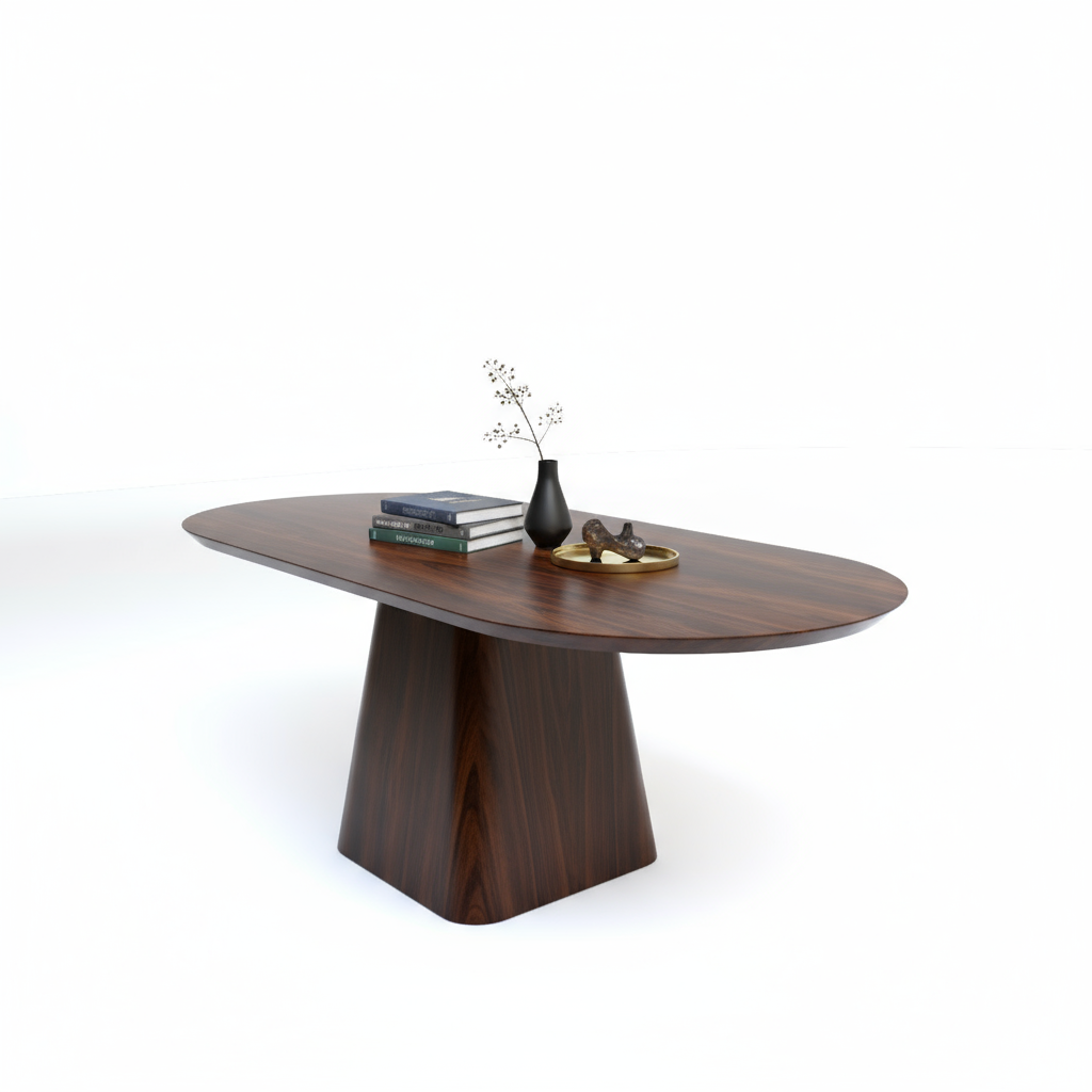 ترابيزه السفره أوك تسلط الضوء على الأناقة الطبيعية مع لمسة عصرية. تتميز بجزء علوي بيضاوي أملس على قاعدة مدببة جريئة، فتمزج بين البساطة والقوة، ومصممه بشكل مثالي لمساحات تناول الطعام والاستخدام اليومي.