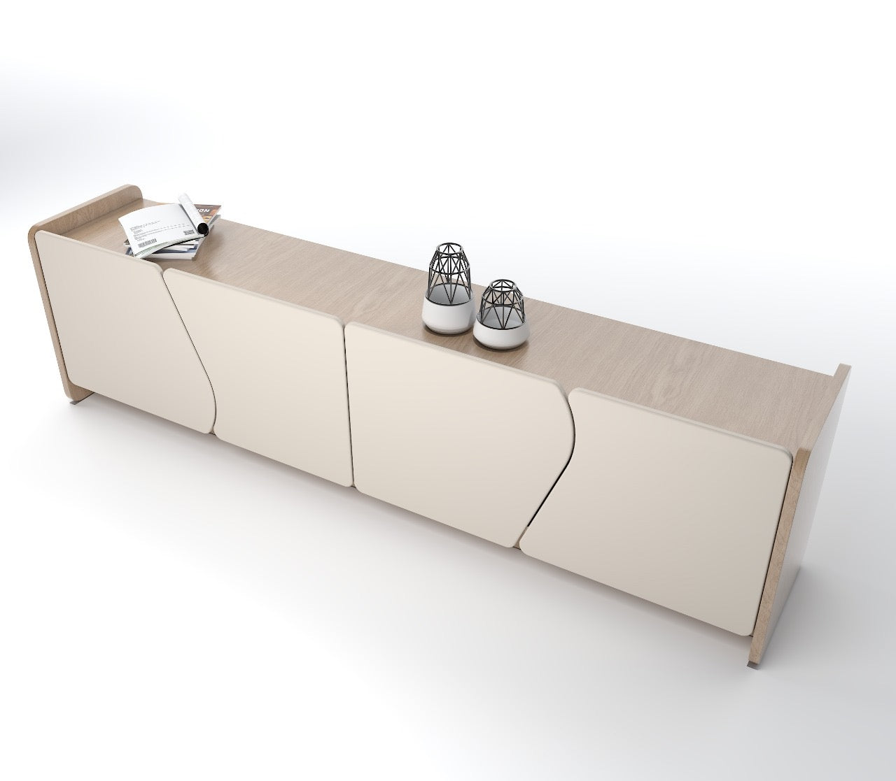 وحدة تلفزيون بيرو تم تصميمها بأناقة عصرية وشخصية رقيقة. تم رفع صورتها الظلية الأنيقة من خلال الألواح الجانبية ذات الزوايا والأبواب النظيفة التي لا تحتوي على مقابض مما يخلق مظهرًا عصريًا سلسًا. تم تشطيبها بمزيج أنيق من الطلاء غير اللامع والدوكو، فهي تجلب الدفء والرقي إلى أي مساحة معيشة مع توفير حلول تخزين سخية.