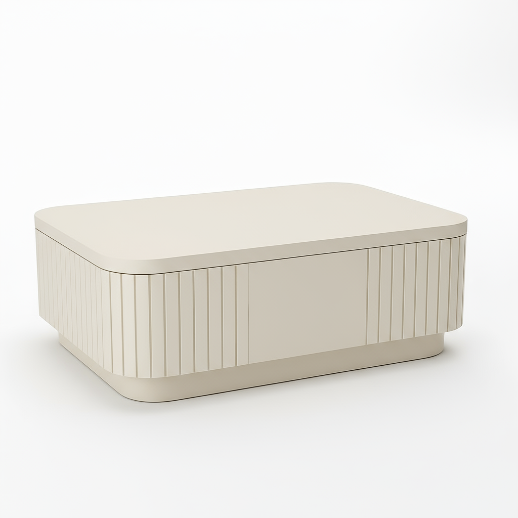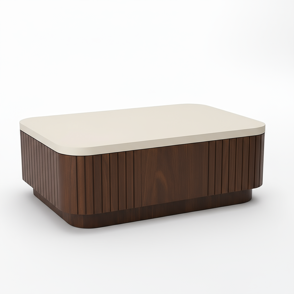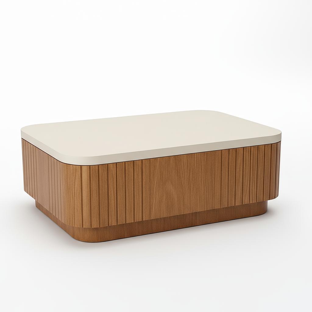 ال الدير ترابيزه القهوه يمزج بين البساطة الحديثة والأنسجة الطبيعية الدافئة، مما يخلق قطعة مركزية خالدة لأي شخص غرفه المعيشه. مصممة بسلاسة قمة بيضاء ومصممة بشكل جميل قاعدة خشبية مخددة، فهي تضيف الأناقة والعمق إلى مساحتك دون أن تطغى عليها.